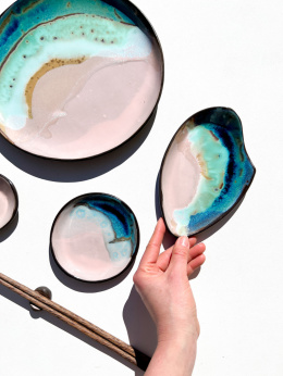 W tej kategorii poszliśmy za oceanem, świeżą bryzą, ciepłym piaskiem, falami i słońcem. Te motywy zdobią nasze komplety, które mogą zagościć na Twoim stole. W czasie produkcji wykorzystujemy jasną glinę, którą dokładnie modelujemy i wypalamy (dwukrotnie). Tak powstała ceramika jest trwała i rzecz jasna urokliwa. Co więcej, podpowiemy, że świetnie nadaje się na oryginalny prezent dla bliskiej Ci osoby.