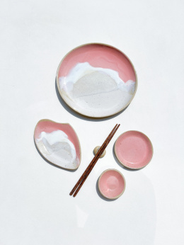 Chcemy sprawić, aby kulinarne podboje były jeszcze lepsze! Gotujesz, a może zamawiasz jedzenie? Nieważne, jaką formę wolisz, my przygotowaliśmy coś dla wszystkich miłośników potraw z kraju kwitnącej wiśni. Oferowany przez nas zestaw do serwowania sushi dla jednej osoby to piękno zamknięte w morskich barwach. Stawiamy na rękodzieło, na unikalność jedyną w swoim rodzaju. Dostępne w tej kategorii ceramiczne zestawy do sushi składają się z pięciu elementów: dwóch talerzyków, patery, małej miseczki na sos sojowy oraz podstawki pod pałeczki.